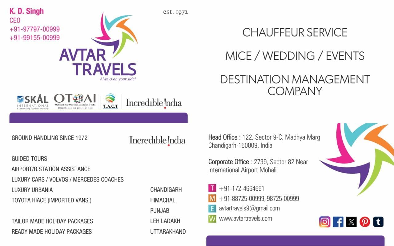 Highly recommended! Superb experience I was extremely satisfied with AVTAR TRAVELS CHANDIGARH . Mr. KD SINGH the owner, has proven to be very courteous and helpful...